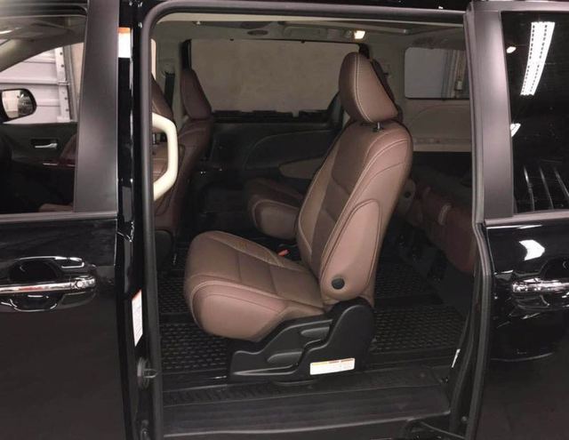 19款丰田塞纳内部空间非常大,充分发挥了MPV的优势。 座椅全部采用双色真皮,第二排座椅的腿部支撑,放倒第三排座椅,加上腿部支撑,完全变成了两张摇篮床,让长途旅行多了一份舒适。宽敞舒适后座空间,配上该车安全稳定的行驶系统,保证途中也能舒适地谈上生意。