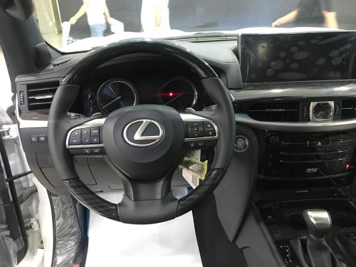 19款雷克萨斯LX570全新设计的多功能方向盘、中控台、车门内侧均由真皮及珍贵实木内饰包裹,半苯胺高级真皮座椅给予乘客恰到好处的支撑和柔软舒适的触感。而水平式仪表盘设计,可以让驾驶者更清楚掌控车辆的位置与状态,提供道路与越野的操控感。12.3英寸超大液晶显示屏创下同级之最,分辨率达 1280*480,新增的大尺寸全彩抬头显示器可分三列显示丰富信息,成为全系标配。
