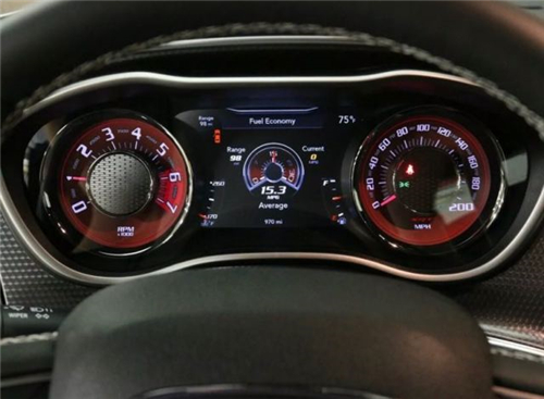 18款道奇挑战者地狱猫srt的内饰造型与新款挑战者基本保持一致,但细节方面透露着更加强烈的运动气息。采用了全新的SRT专属方向盘,并在副驾驶侧出风口和座椅上镶嵌有SRT专属徽章。此外,在仪表盘中央还能出现Hellcat的专属LOGO。道奇挑战者地狱猫srt配备平底方向盘,仪表盘采用复古设计,但大部分是彩色液晶显示,中控面板配备的8.4寸屏幕集成一个优秀的系统,用户可以在上面调校车辆参数,比如变速箱挡位尺比、直线加速弹射起步、G力设置、比赛计时等专业数据。