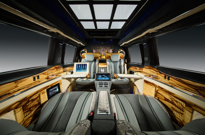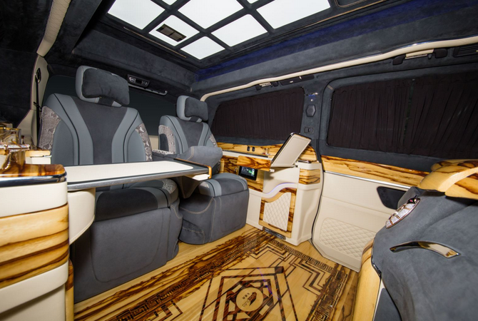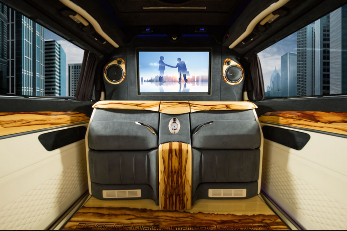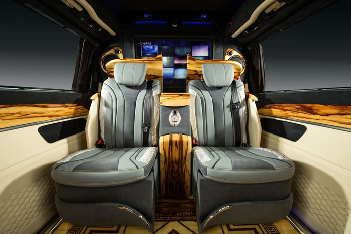 奔驰威霆 (配置|询价)奔驰V级 (配置|询价)V260L美杜莎版、喜马拉雅、钻系列全车采用隔断设计,实木吧台可电动收展成隐藏式秘书座椅,吧台于座椅完美结合,座椅采取迈巴赫S (配置|询价)500反向座椅。影音娱乐系统,32寸超薄可升降液晶电视、日本健伍音响、蓝光DVD,以及电动办公娱乐桌板系统、12V可翻转热水壶、指纹识别保险柜、酒柜,对于商务谈判来说,这一切的配置都来得恰到好处。