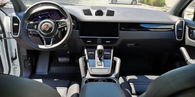 19款保时捷卡宴内饰最吸引人的地方就是科技感较强,而且触摸键的感觉也是很不错的,不会出现盲操不方便的情况。该车的车顶材料是翻毛皮的,非常的抗脏,但是味道也大。中控屏的尺寸是12寸的,显示效果很好,操控性也很不错。并且还选装了一些功能,像倒车影像这个配备是360度的,效果很好。2019款保时捷卡宴的底盘,是4D的,很舒服。身高是1.86m,坐在车里面还感觉很宽,跟轿车相比还是SUV更舒适。