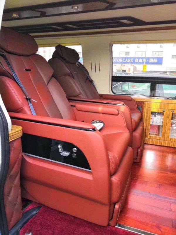 mm的巨大尺寸,高顶的设计保证了充裕的垂直空间。其车身内置车业罕见的前、后镀铬大型防护钢板,前后保险杠均为全钢防撞结构,并采用了加强型高底盘,乘车安全毋庸置疑。高大威猛的外形,辅以大型双对开式机械中门及高顶设计,与复古的驾驶舱一样,坚持车型特色的同时。有着非常强势的内部空间,尤其是2米八的高度,即使是一米八的大汉在车内直立行走也毫无压力。前脸方面,依旧保持奔驰独有的多边形进气格栅,与威严感的LED前大灯交相辉映,下半部分,它采用了粗犷的进气格栅造型,更凸显其质感。奔驰斯宾特颜值爆表,被誉为“移动的别墅”超越GMC商务之星!内饰方面,奔驰斯宾特星耀B的中控台由精选真皮和木纹饰板装饰,采用了平底式多幅方向盘。
