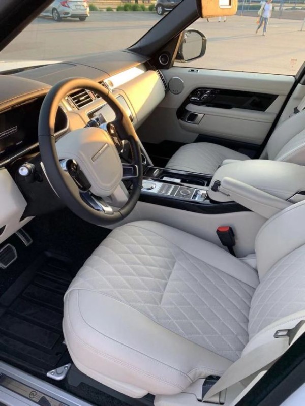 19款巅峰揽胜 (配置|询价)SV限量版揽胜行政 5.0 T创世加长 颜色:白/米配置:22寸刀风轮,五座变四坐,左右腿拖,左右伸缩桌板,菱形格子坐椅,SV创世包 (HUD抬头显示 ,ACC雷达测距 ,1700w顶级音响 ,黑钢琴桃木内饰 ,加热方向盘 ,24向前排按摩通风加热座椅,后排加热通风座椅,氛围灯,环影,盲点辅助,车道偏离警告)挡风玻璃加热,冰箱,空气净化器,交流电源插座 ,SV限量,黑撞顶,加热风挡,备胎,大黑漆,吸烟包,装载空间存放导轨带行李箱。