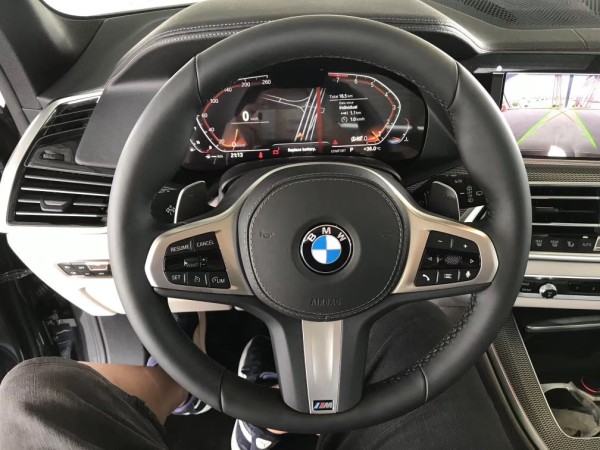19款宝马X5内饰更加豪华的感觉,用了两块巨大的12.3英寸的屏幕,整车效果不错。大面积的皮质包裹,手感很好,粗大握感十足的皮质方向盘,带换挡拨片,方向盘加热等等,全液晶的12.3英寸的仪表,显示的内容相当丰富,并且显示分辨率和操作响应速度都是相当快,中控换挡区域最大的变化就是,档杆换成了全新的水晶档杆,整体的豪华感和科技感更加强,但是只有顶配才可以选择。