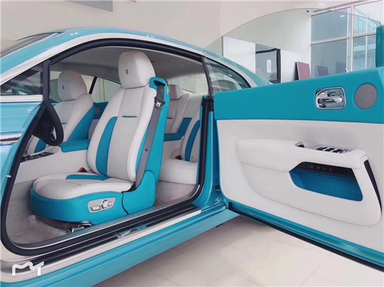 劳斯莱斯一辆车的内饰至少需要八张牛皮,为确保颜色的统一,八张牛皮必在同一批进行染色。这些牛皮并非简单的着色,而是采用桶染工艺进行染色,保证著色均匀。奢华的真皮皮质,天然粒面手感极佳,LOGO纯手工缝线,摸上去凹凸有致,感叹劳斯莱斯的手工技艺。魅影采用非常厚实的羊毛地毯,脚踩在上面非常柔软,可见没一处细节都经过了精心的设计。