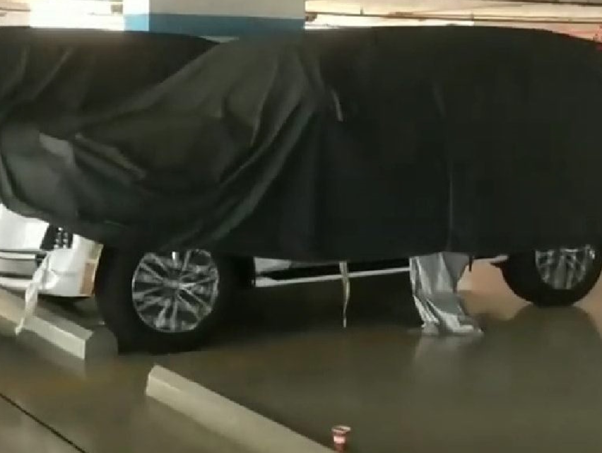 视频里的2020款日产途乐Y62似乎出现在某个仓库中,并用一张车衣掩盖起来。