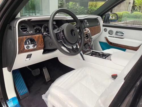 内饰方面,该车采用了劳斯莱斯家族式的设计,新车采用了经典的三联仪表盘,同时还将配有可收起的10.2英寸中控屏,轻触车门把手上按键就可以电动关闭。库里南内部用料奢华,中控台被大面积实木覆盖,三幅式方向盘依旧硕大。