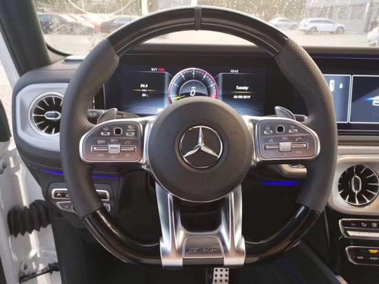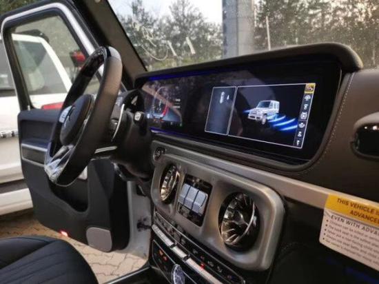 19款奔驰G63车内采用深色调与桃木装饰,黑色真皮运动座椅非常舒适,方向盘以高档真皮包裹装饰,触感极其细腻。配有桃木装饰的操控台,稳重大气,同时提高了整体的质感。各种功能按钮应有尽有,丝毫不次于豪华轿车的功能。