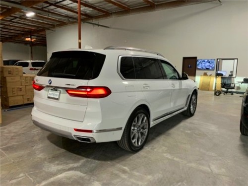 宝马X7 (配置|询价)采用宝马全新家族设计,双肾的进气格栅面积相当庞大,细长的大灯组采用开眼角的设计,使新车横向视觉感受更宽。新车灯组内部布局精致,配备了矩阵式激光大灯,点亮后效果可佳。新车在前杠下方的设计格外有气势,配上镀铬条的融入,显得新车有着十足的豪华感。