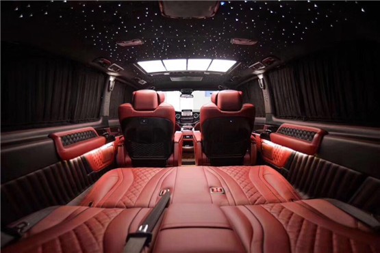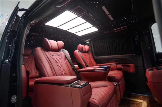 奔驰威霆中排豪华高档航空座椅,旋转电动加热按摩通风USB接口,犹如飞机头等舱的感觉,让您坐在车上有种不想下车的心思!整个车内的隐私性和隔音效果做到最佳,高档纯棉布艺专用窗帘除了遮光隐私外,也使得整车档次提升不少;整车采用大能MPV全车顶级隔音配置方案,让车辆即便是在使用过程中也更安静舒适!