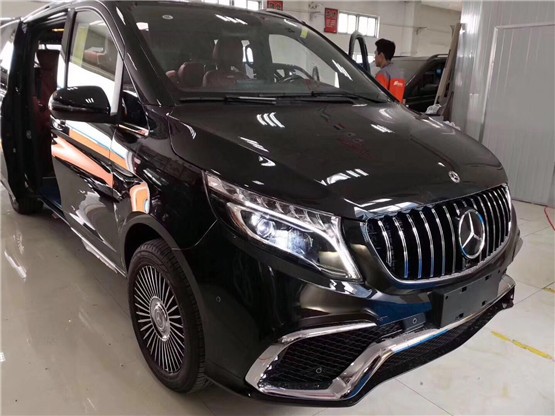 奔驰威霆 (配置|询价)就做了相当多的改装变动,首先外观:原先的三层镀铬饰条直接改成了栅栏式金属饰条,以及运动风格的下唇包围,可从这车前脸看,是真的看不出是奔驰威霆。