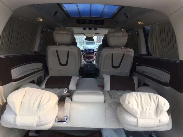 奔驰V250迈巴赫VS680的第二排座椅采用了奔驰迈巴赫授权专用座椅,支持8项电动调节,此款航空座椅(带360度旋转、通风加热、160度电动后仰)还配备了两个迈巴赫头枕。