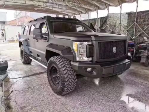乔治巴顿越野车在外观造型上刻意突出了威猛的形象,车身覆盖件设计得粗犷而充满张力,突出的前灯、尾灯、车门把手、牵引钩以及大面积的镀铬装饰条更强化了这种感觉。驾驶舱内有夜视系统、卫星导航、防生化毒气系统、供氧设备等安全设备,还有多媒体影音视讯系统、高科技卫星侦测系统。