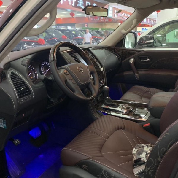 2019款内饰更加不会让你失望:日产尼桑途乐内饰兼具了舒适性和功能性,仍然为三排座车型,内饰材质也更加的考究,使用了皮革,中控部分的设计比较具有豪华感,标准日系豪华车的风格,BOSE 音响是很多中高端车所选用的,音响效果不会让你失望。尼桑途乐 Y62 的内部做工采用大范围真皮包裹和木纹面板装饰,并以金属饰条点缀。方向盘较大,但是握感还是很舒适的,越野中不会拖你后腿。