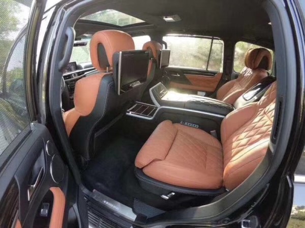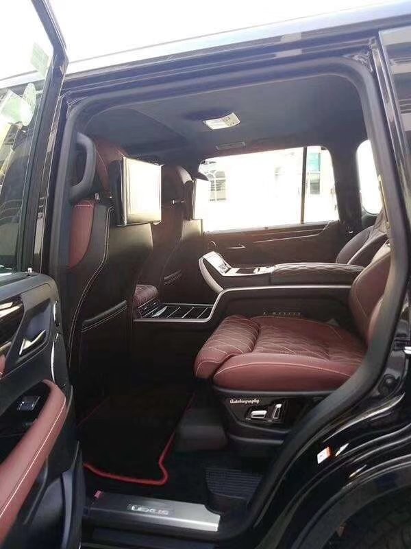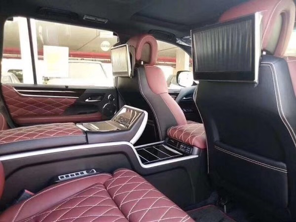 19款中东版雷克萨斯LX570 限量版S(大包围):雷达测距、抬头显示、换挡拨片、铝制行李架、限量包(前后大包围、黑色大中网、钢制油门/刹车脚踏板、车门迎宾灯)、S限量花纹脚垫、后包围镀铬、镀铬尾喉、外置拖车钩、138升双油箱、遥控启动、车身防擦条、副驾驶灭火器、流水转向灯、金属漆、Logo地射灯、21轮、冰箱、天窗、智能卡、电眼、环影、后娱、底盘升降、前座椅通风加热(真皮)、导航、多功能桃木真皮方向盘、桃木内饰、航空照明脚踏、LED 氙灯、大灯清洗、迎宾灯、四区空调、三排电动、电尾门、ACC自适应巡航、后座椅通风、车道保持、并道辅助、二排遮阳帘、马克莱文森音响、后盖带LED灯、4座