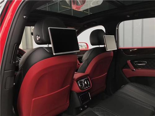 尽管添越是一款以驾驶兴趣为主的全地形SUV,但他并没有因注重前排打造,而忽略了后排乘客。还细心的为后座乘客提供了丰富的信息娱乐功能:乘客通过前排头枕后的两个10.2英寸信息娱乐平板电脑即可轻松操作。这些平板电脑使用方便、可以拆卸(以便在车内和车外使用),提供电视、视频娱乐、游戏、视频通话、流媒体等娱乐活动。在配置 Bluetooth 耳机的同时,车内还提供内存、SD 卡和 USB 插槽等多种配套设施。