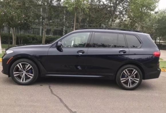 侧面部分,X7的侧面线条很硬朗,配合上高大的车身尺寸,给人十分魁梧的感觉,大型豪华SUV本该这样。与7系 (配置|询价)相同的L形的镀铬也被安置在了侧裙上,豪华感凸显。超大的多幅轮毂很有高级感,让人一眼就能知道它的豪华定位。