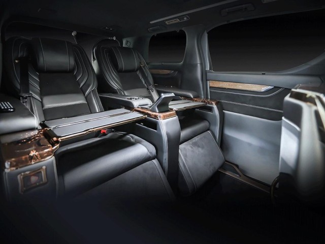 内饰采用飞机头等舱人体工程贴合身体各个部位的乘坐角度。更值得注意的是真正飞机舱都做不到的座椅功能,埃尔法座椅带有座椅加热、座椅通风、座椅气动按摩、座椅腿托一键式伸缩功能及腿托180度展开、隐藏式航空镁铝合金行政办公桌板、同时扶手多功能键盘区配有亮度可调节阅读灯、3级座椅记忆功能。操作键集中便捷,使得后排乘坐贵宾可以安心享受航空舱带来的乐趣。