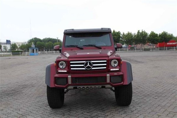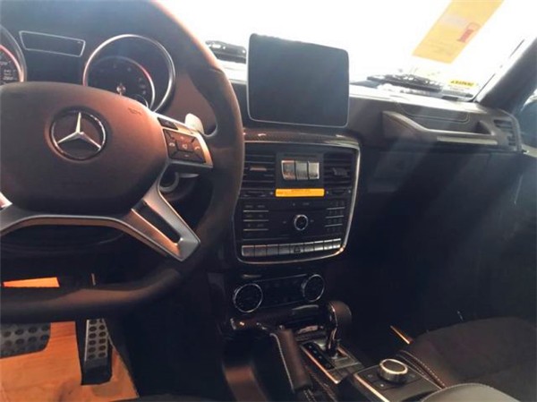 G550 4✖4² 现车 配置: 美版G550 4x4平方,黑车黑内,配置:离地距离 450mm、涉水能力 1米、轮胎间距 1.744mm、3种驱动模式、22寸轮毂、每个轮胎带有两个减震器及两个悬架弹簧 单天窗、22轮、红卡钳、双减震、氙灯LED日行灯、多轮廓电动包裹座椅、翻毛皮内饰(翻毛皮双色座椅、翻毛皮方向盘、翻毛皮门板、翻毛皮内顶)、前排座椅通风加热、二排座椅加热、哈曼音响(14个扬声器)、三把差速锁、中控碳纤维装饰、底盘舒适度调节、脚踏、前电眼、倒影、导航、多功能方向盘(蓝牙、定速巡航、换挡拨片)