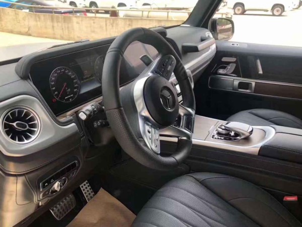 2019款奔驰G63内饰方面,新G63保留了新G500的整体设计,除配色差异外,新车还换装了全新造型的平底式AMG运动方向盘,其两侧配以打孔皮质包裹,下部镀铬装饰的造型也与新G 500明显不同,看上去十分战斗。此外,全液晶仪表盘+中控大屏的双12.3英寸屏幕设计在新车上也没有缺席,营造出了浓郁的科技感。