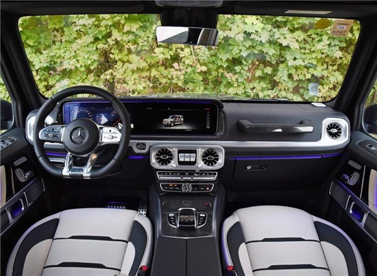 2019款奔驰G500原先无论经历如何包装,选用各种高级材料重塑车厢,但从刻板的内饰面貌上只能传递出工具车的印记。如今进入全新奔驰G级 (配置|询价)的车厢后,能够看到最新奔驰家族化内饰设计,眼前的景象完全看齐自家SUV旗舰。车厢内除了经典的实木饰板外,还应用了金属、碳纤维和皮革等高级材质。2019款奔驰G500中控台中央位置,精心按照1中、2后、3前顺序安放有三把锁的控制按键,内饰布置在保持G级传统功能位置的同时,作以精心优化,做出了符合身价的科技感和豪华感。内饰颜色多选,满足客户不同喜好需求。