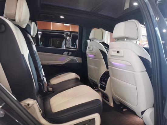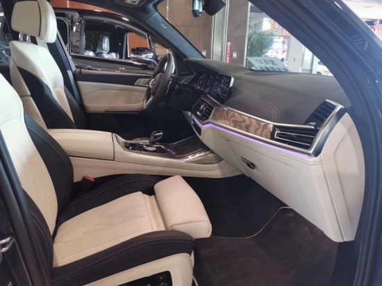 19款美规宝马X7 3.0T 7融入最新家族式设计元素,内饰大部分区域由银色饰条及木质面板加以点缀,配备带有注意力监测的液晶仪表盘及全新的三辐式多功能方向盘,中控区域为悬浮式触控显示屏,下方为空调出风口与实体功能按键,杯架处还加入可为饮品制冷或加热的功能,换装全新的水晶电子档把。除此之外,新车还配备了Vernasca皮革内饰,四区气候控制系统及三段式全景天窗。