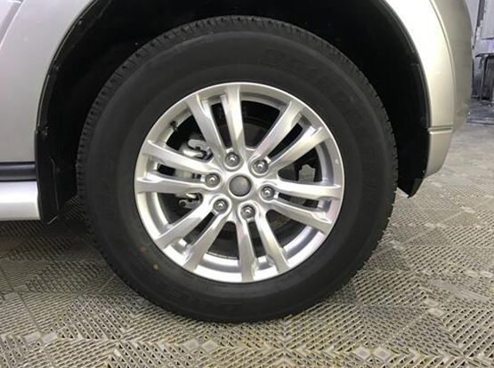 该车配备了双六辐式轮圈,规格为265/60R18的普利司通动力侠系列轮胎,该系列是普利司通专为SUV打造的一款品,多款SUV都搭载了动力侠系列轮胎,由于其优秀的耐磨性和运动性,在替换市场也很受青睐。