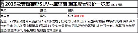 2019款劳斯莱斯首款SUV--库里南,正式亮相天津华夏安邦国际贸易有限公司--保税店。该车拥有不怒而威的外观设计,像极了约尽浮华的老绅士。