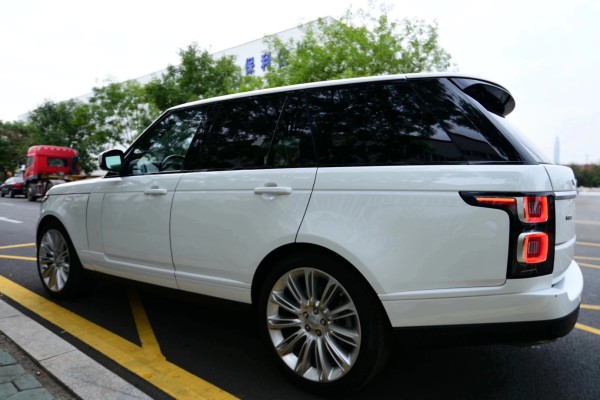 新款路虎揽胜行政汽油前脸进行了细微的调整,格栅部分运用了更强视觉冲击力的金属网格造型,配合扁平斜长的大灯、标志性鲨鱼腮,使整体前脸具有强烈的金属质感和冲击力。车身侧面采用经典的三条车身主线,让车型更为的流畅,更为强调一体化的车窗设计对于悬浮式车顶带来更好的烘托。尾灯样式与前脸大灯造型相呼应,保持了前后一致的特性,看起来更为整体,辨识度高。