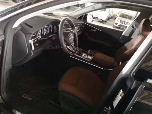奥迪Q8保留全新A8L的设计风格,内饰极具科技感,采用中控双屏和全液晶仪表的前卫设计,空调出风口贯穿整个中控台,下方双屏幕设计代替传统物理按键,在它的中控台上有些三块液晶显示器,与旁边的运动型方向盘互相辉映,充满了飞机驾驶仓的感觉。
