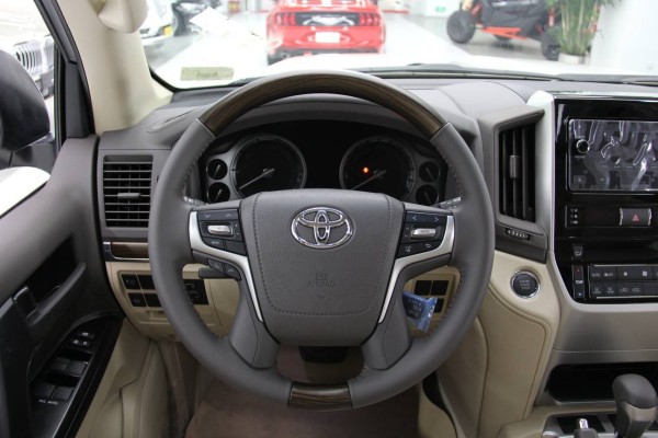 内饰的方面:丰田酷路泽5700整个操控区域色调为 深色系,仪表盘、方向盘和排挡等位置均配以桃木装点,尽显豪华质感。不但具有DVD导航,这款车的倒车 影像还可以显示在内后视镜上;中央扶手箱还装备了冷藏 箱,这些都与中规版车型有所不同。酷路泽5700车内看着更明亮、同时也更显豪华,更符合中国消费者对“豪华”的定义。整个操控区域色调为深色系,仪表盘、方向盘和排挡等位置均配以桃木装点,尽显豪华质感。车内8个座椅均为真皮打造,第一排座椅:电动、。