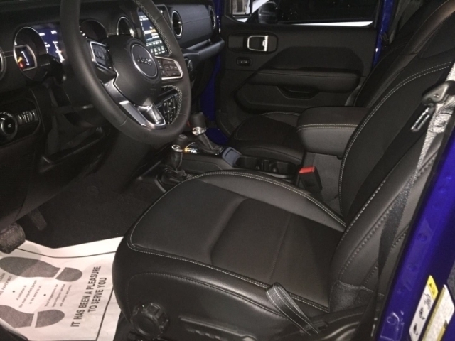 19款牧马人四门2.0T蓝黑 选装配置: 1⃣️2.0发动机8整变速器,自动档。 2⃣️皮椅,帶萨哈拉LOGO 3⃣️寒冷包(255/70/R18全地形胎,前座椅加热,加热方向盘) 4⃣️灯光包(天使眼日间行車灯,LED大灯,LED雾灯,LED尾灯) 5⃣️安全包(先进制动助力,主动制前向碰撞警告) 6⃣️导航音响包(8.4大屏觸摸屏,ALPINE高级音响,主动噪音控制系统,自动防眩目后视镜,GPS导航,高保真收音机)。 7⃣️双顶包(黑色吉普车自由顶硬顶,高级太阳骑士软顶,自由面板存储袋) 8⃣️轨道货物管理系统 9⃣️防滚后桥差速器 1⃣ 0⃣ 无钥匙进入 1⃣ 1⃣ 软顶窗储物袋 1⃣ 2⃣ 海洋蓝色金属漆