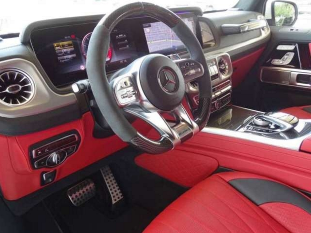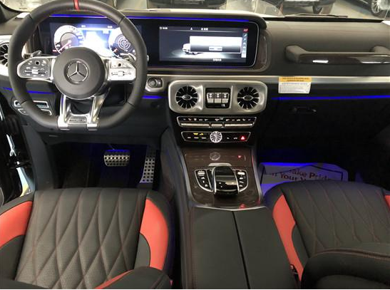 2019款全新G63内饰方面,新G63保留了新G500的整体设计,除配色差异外,新车还换装了全新造型的平底式AMG动方向盘,其两侧配以打孔皮质包裹,下部镀铬装饰的造型也与新G 500明显不同,看上去十分战斗。此外,全液晶仪表盘+中控大屏的双12.3英寸屏幕设计在新车上也没有缺席,营造出了浓郁的科技感。