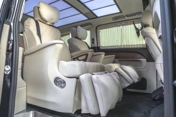 带有按摩加热通风功能。后舱前为两个独立航空座椅,第二排座椅安装进口首席航空座椅,加热通风按摩功能齐全,最大限度的减缓您的乘车疲惫。八向电动调节:电动头枕,电动腿托,前后电动调节,电动靠背调节。第三排为一组沙发座椅(可电动展平,形成一张舒适的沙发床)。