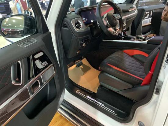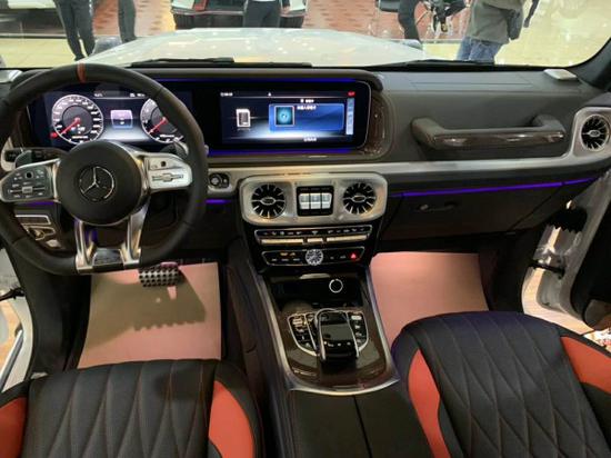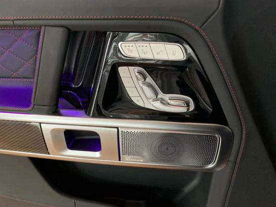 2019款奔驰G63内饰方面,新G63保留了新G500的整体设计,除配色差异外,新车还换装了全新造型的平底式AMG运动方向盘,其两侧配以打孔皮质包裹,下部镀铬装饰的造型也与新G 500明显不同,看上去十分战斗。此外,全液晶仪表盘 中控大屏的双12.3英寸屏幕设计在新车上也没有缺席,营造出了浓郁的科技感。