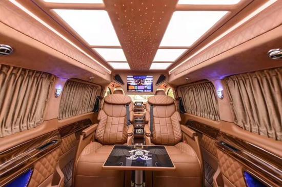 整体内饰以质地顺滑的米白色Nappa真皮衬底,一款很恬静、丝毫不显距离感的暖色系,让人不自觉的就有种亲切感。奔驰商务车V260顶置液晶电视创意,在几乎不占用到任何实用空间的情况之下,搭配上这套环绕的立体声音响,给了你更高级的家庭影院级的行程享受。