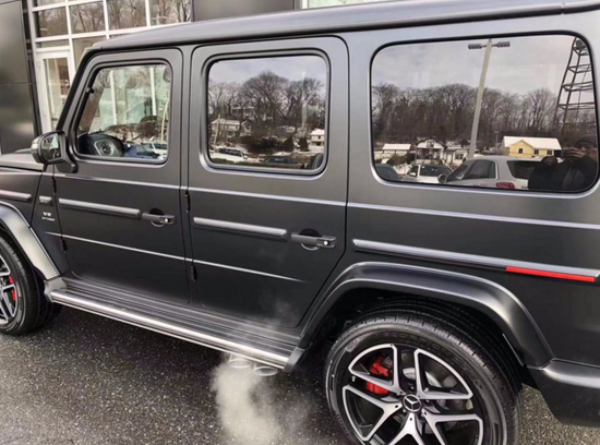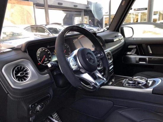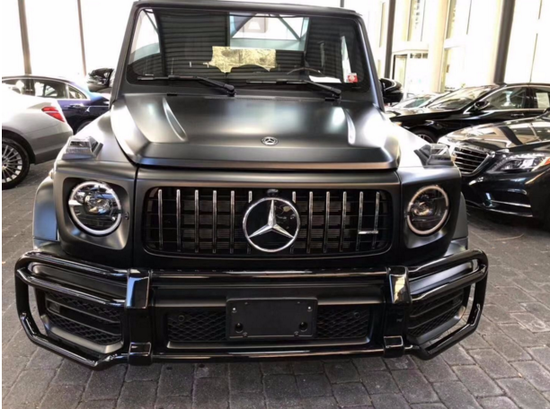 全新的直瀑式进气格栅可以说是家族最新的设计风格,也是在新车外观造型上与奔驰系列产品差异化最明显的地方。其中AMG系列的直瀑式格栅在新时代下的鼻祖可以说是AMG GT车型,它内部由12根竖置镀铬饰条组成,同时新车的保险杠进气口相比G 500造型也更具有攻击性。此外,新AMG G 63最大的轮圈尺寸提供22英寸可选,进一步提升了它外观造型的彪悍程度。展车不仅采用了全新的车身涂装,还搭配了红色的轮圈装饰,更加个性。