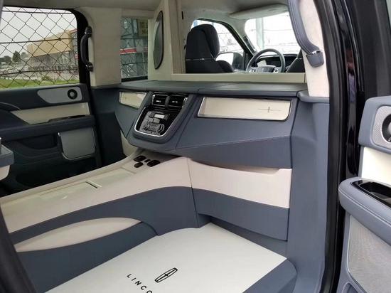 2019款林肯领袖一号内饰采用隐藏式六座格局,有两个是折叠椅,也称为秘书椅,图片均为实拍现车,展厅现车多台,随时可以提车,手续齐全,欢迎新老客户到展厅品鉴议价。