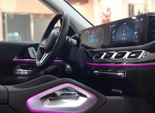 2020款的奔驰GLE450内饰方面,则延续了现款S级 (配置|询价)的造型,用的是贯穿式中控台双屏设计,12.3英寸的双液晶显示屏带来的科技感爆强,并且搭载 了奔驰最新的MBUX人机交互系统,采用搪塑,皮革,实木,金属和碳纤维材质,三幅式平底方向盘动感十足,头顶一个全景天窗,座椅用的是双色搭配的运动风格座椅,舒适性和包裹性也比较好。行李厢常规容积825L,扩展容积为2055L。