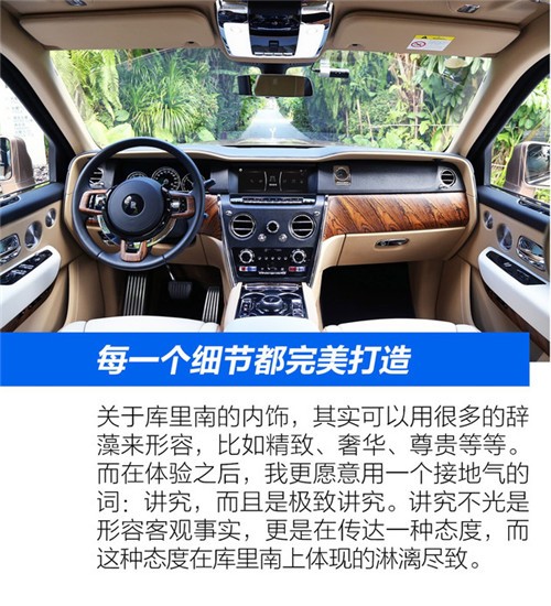 一切关于提升体验的问题都在劳斯莱斯设计师的考虑范畴内:首先库里南车身可以降低40mm,降低后的高度并不比幻影 (配置|询价)高太多;另外,如果你真的开着库里南去跋山涉水了,也不用担心下车时蹭脏裤脚,因为库里南的车门将下面门框部分包的严严实实。