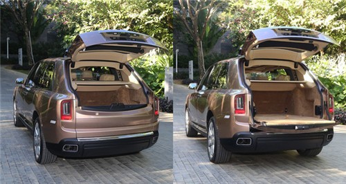 劳斯莱斯库里南的后部存储空间相当充裕。行李厢空间达560升,如果把行李厢和后排座椅之间的隐私分隔屏收起,储物空间可达600升。另外,由于后排座椅底座设计高于行李厢地板,即使两个座椅均下折,行李厢中的物品也会被完好固定而不会向前滑落,这一点与其他品SUV的设计有着本质区别。如放置长形物品,仅需将行李厢地板一键抬升至与座椅底座齐平,便可实现长2245毫米、面积1930升的超大储物空间,让物品在宽敞空间自如安放。