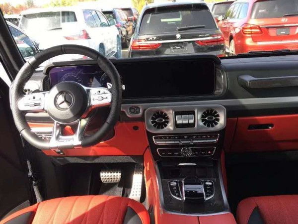 全新G63内饰方面,新G63保留了新G500的整体设计,除配色差异外,新车还换装了全新造型的平底式AMG运动方向盘,其两侧配以打孔皮质包裹,下部镀铬装饰的造型也与新G 500明显不同,看上去十分战斗。此外,全液晶仪表盘+中控大屏的双12.3英寸屏幕设计在新车上也没有缺席,营造出了浓郁的科技感,