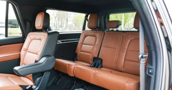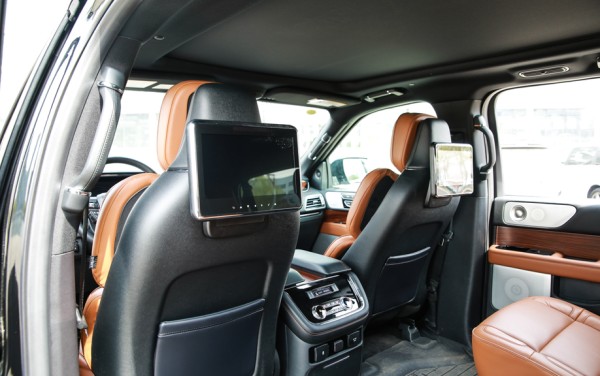 林肯领航员3.5TT 7座精雕细琢的内饰,结合了美国胡桃木和高级真皮材料、丝光镍饰件与白色发光二极管等组合一起,营造出一个豪华、浪漫而又极具现代感的车内环境。