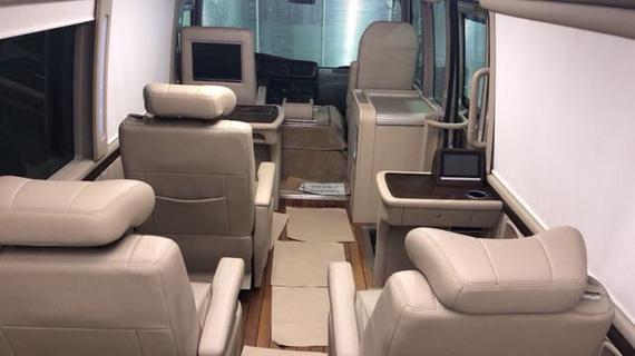 从内饰方面来看,丰田考斯特奢华版秀外慧中,车内布局个性化设计,宽敞舒适,内饰采用欧洲流行设计。丰田考斯特改装商务车配备了全桃木材质的办公桌和全桃木外饰的4L冰箱,车为私密玻璃在配上吸顶式空气净化器,即便是在密闭的车内也能呼吸到新鲜的空气,使您乘坐时身心愉快。