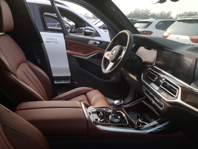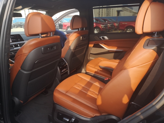车辆内饰整体来看,X7的内饰相比5系 (配置|询价)和7系 (配置|询价)并没有什么特别之处,只是在材质的应用上会比较特别。新车内饰保持了宝马目前最新的设计语言,“旗舰”身份更多体现在了材质搭配和对细节的雕琢上。如果一定要找出区别的话,那么与仪表台相连的中控屏,算是旗舰车型在宝马家族中的独享设计。方向盘造型与现款5系和7系如出一辙,哑光与白色缝线这两个设计元素让方向盘看起来典雅且低调。方向盘背后则是12.3英寸的全液晶仪表盘,虚拟时速/转速表打破了老款的物理圆环限制,提供了更好的观感。而与劳斯莱斯同款“星空”车顶又显得独出心裁。X7的尾门采用了上下开启式设计,使用便捷性不错。另外,如果选装了“舒适开启”这一配置,上、下尾厢盖还能够电动开闭。