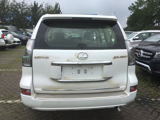 19款雷克萨斯GX460 (配置|询价) 白/褐 报价86.5万 配置:V8 4.6L、七座、非承载式车身、6挡手自一体、18寸轮、12气囊、空气悬挂、动态调节悬挂系统(KDSS)、中央差速锁、天窗、氙气大灯、LED日行灯、大灯清洗、打孔真皮座椅、电动座椅主驾带记忆、前后座椅加热、智能钥匙、三区自动空调、8寸触摸屏、导航、蓝牙、倒影、电动真皮多功能方向盘、定速巡航、桃木内饰、胎压监测、电动调节外后视镜(电动折叠、记忆功能、可加热、LED转向灯、倒车自动角度调节)、前后电眼 、桃木方向盘、侧镀铬防擦饰条、尾门镀铬饰条 、尾门槛镀铬饰条