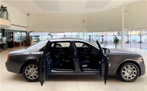 2019款劳斯莱斯古斯特 (配置|询价)加长版,身侧面比例是非常讲究的,车身高度与轮圈高度的比例必须是2:1,这是为了衬托出它的雍容华贵及厚重感,视觉感受无比尊贵。尽管对开式车门造价很高,但为了保证上下车的优雅,将此设计代代相传。