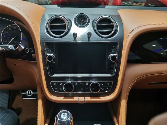 18款宾利添越4.0T仪表板本质上是一个可以模拟模拟速度表和转速表的显示器。在中间,它显示导航或车载计算机的数据,一般来说,功能很棒。挡风玻璃上还有一个投影,显示当前的速度,字符识别系统的数据,导航数据和全方位的可见性 - 非常有用。中控台主要由木材制成,上部配有两个圆形镀铬通风口和一个模拟时钟。