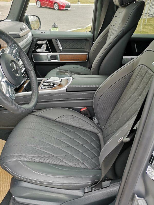 19 款全新G63内饰方面,新G63保留了新G500的整体设计,除配色差异外,新车还换装了全新造型的平底式AMG运动方向盘,其两侧配以打孔皮质包裹,下 部镀铬装饰的造型也与新G 500明显不同,看上去十分战斗。此外,全液晶仪表盘+中控大屏的双12.3英寸屏幕设计在新车上也没有缺席,营造出了浓郁的科技感。