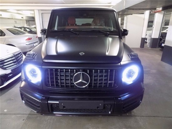 奔驰G63 (配置|询价) 美规 19款 白/咖 #268 选装:内饰加强包(菱形缝线) 纳帕真皮座椅 动态按摩 AMG红色卡钳 22轮AMG黑色轮毂 AMG运动方向盘 12.3寸宽屏 360环车影像 标配: 自动防眩目内后视镜,3区气候控制,热噪声绝缘夹层安全玻璃,加热和可调节后视镜,电加热后挡风玻璃,带有单触控制和障碍传感器的电源窗口,后挡风玻璃刮水器,带雨传感器的挡风玻璃雨刷,大灯助射,中央门锁,无钥匙启动,AMG前格栅设计,时钟,仪表板上的前乘客抓把手,越野屏幕,定速巡航,带易进入系统的电动可调式转向柱,触摸板与控制器,前座及头部调节的记忆功能,驾驶和前排乘客的扶手,前排座椅加热,可折叠的后座靠背,后排座椅头部调节,后座加热,双杯座,发光可锁定的手扶箱,后折叠扶手,全轮驱动,ECO启动/停止,Direct-steer 系统,动态选择,后座儿童锁,ESP电子稳定程序,电动驻车制动器,ABS刹车防抱系统,ASR加速防滑控制系统,电子牵引系统,前排安全气囊,前排膝盖安全气囊,前端和翻转传感器,黑色金属漆,黑色nappa皮内饰,红色AMG卡钳,主动车道保持辅助装置,前面板不锈钢黑色,外部保护